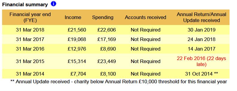 Each year we submit our accounts to the UK Charity Commission. Below is a summary of all our donations received during the financial year.